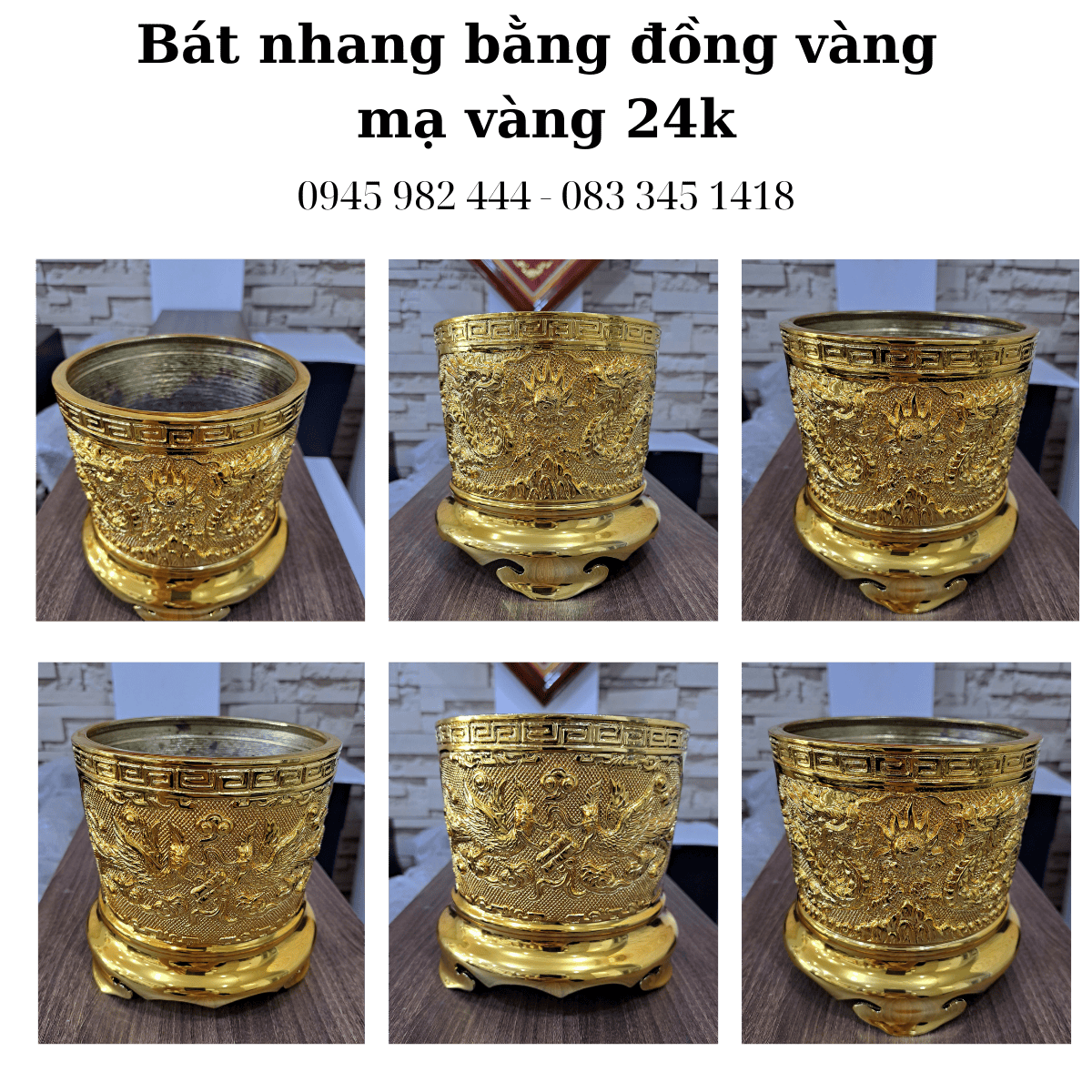 Chúng tôi chuyên cung cấp bát nhang bằng đồng vàng mạ vàng 24K cao cấp, cam kết: