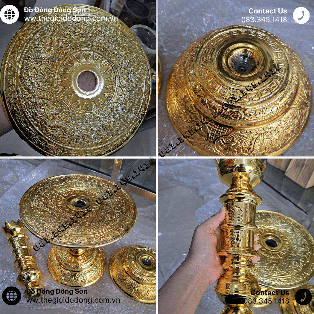 Bộ lư đồng mạ vàng là một sản phẩm nghệ thuật độc đáo, kết hợp tinh tế giữa vẻ đẹp truyền thống của chất liệu đồng và sự sang trọng, hiện đại của lớp mạ vàng cao cấp. Với thiết kế tỉ mỉ, chất lượng vượt trội, bộ lư này không chỉ là vật phẩm dùng để thờ cúng mà còn là món đồ trang trí cao cấp, thể hiện đẳng cấp và gu thẩm mỹ của gia chủ.