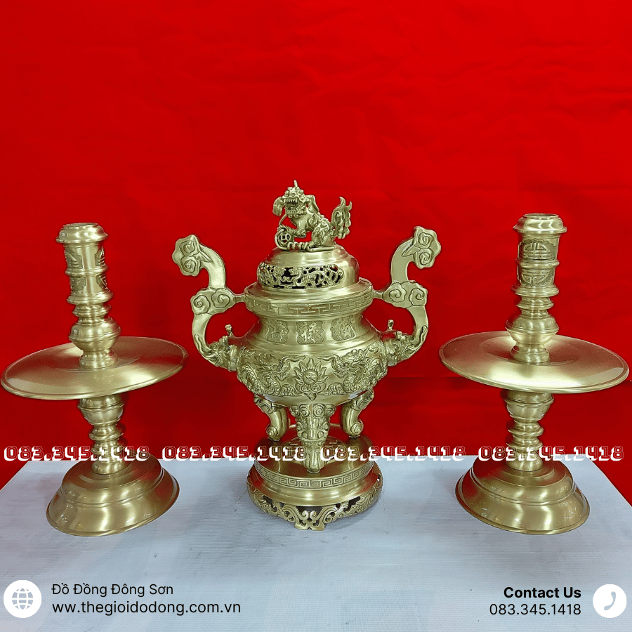 Kích thước : Đến với , chúng tôi nhận chế tạo, sản xuất các sản phẩm Đồ thờ cúng – Bộ tam sự ngũ sự bằng đồng theo mọi kích thước và mẫu mã yêu cầu từ phía quý khách hàng.