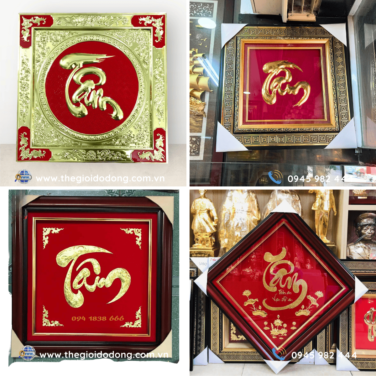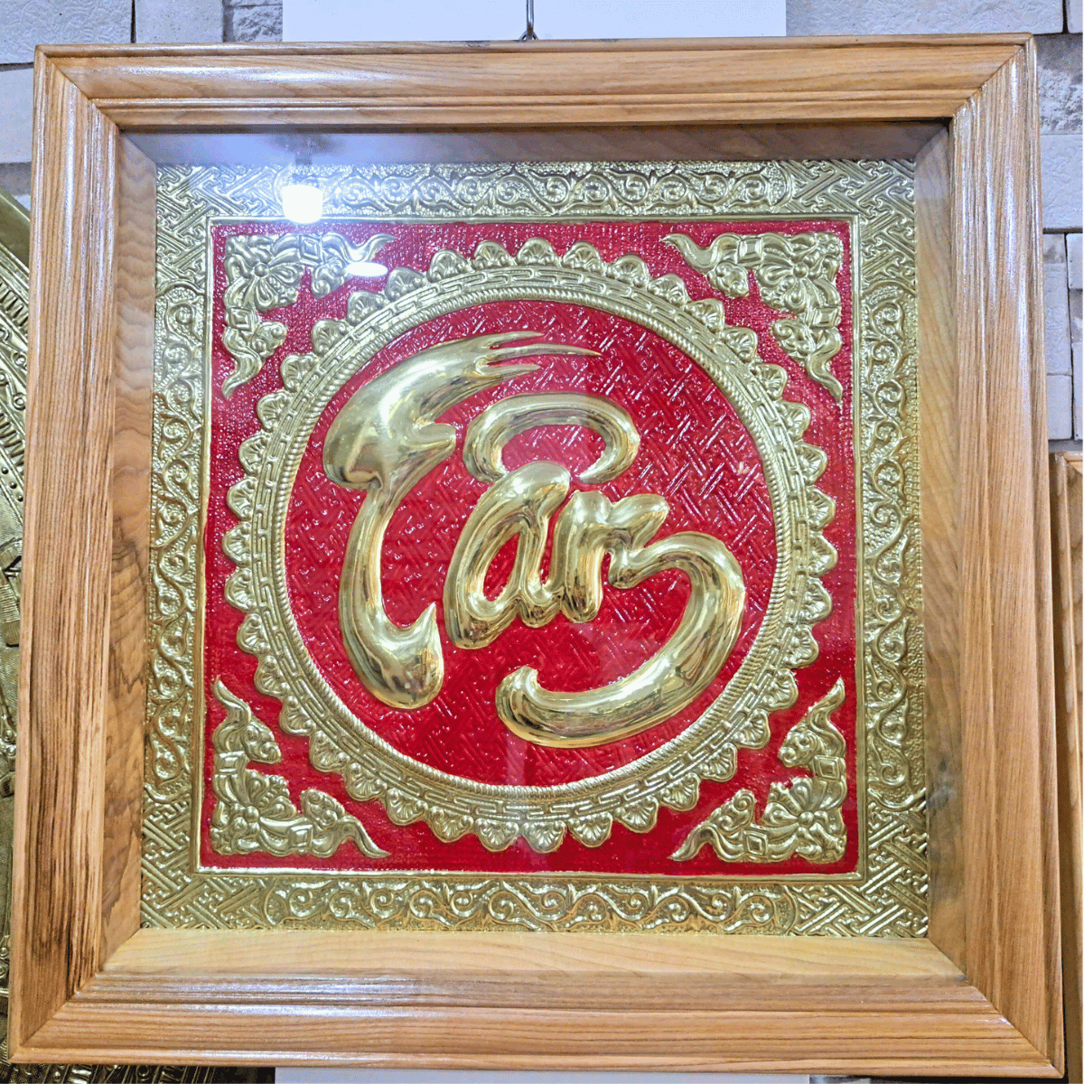 🔸 Chữ Tâm thư pháp nền đồng chạm tay, khung gỗ gụ hoặc gỗ hương cao cấp.