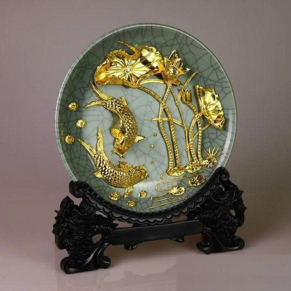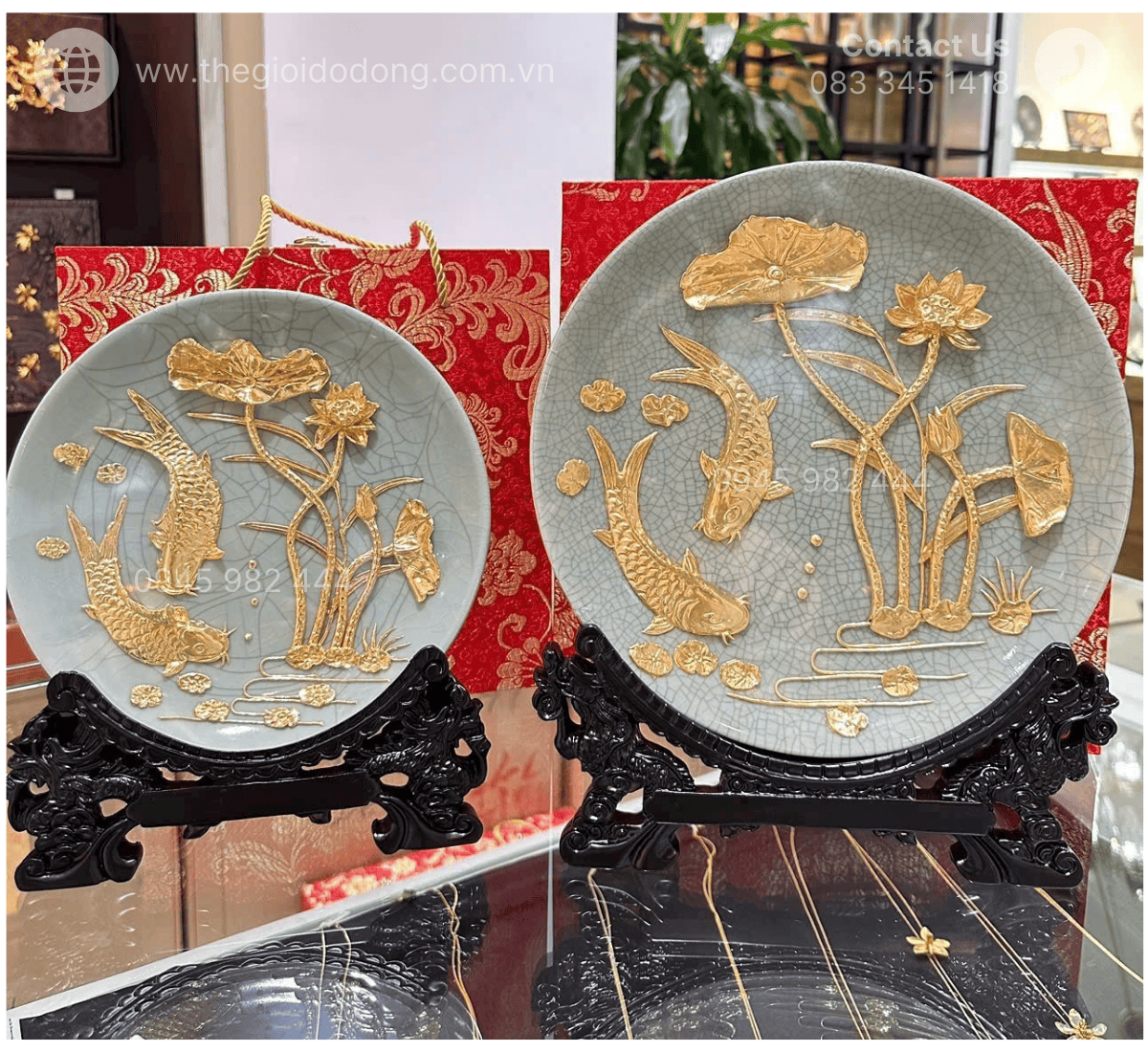 Tranh Đĩa Cá Chép Hoa Sen Dát Vàng – Quà Tặng Đối Tác, Sếp Nữ Chuẩn Gu Sang Trọng, Ý Nghĩa