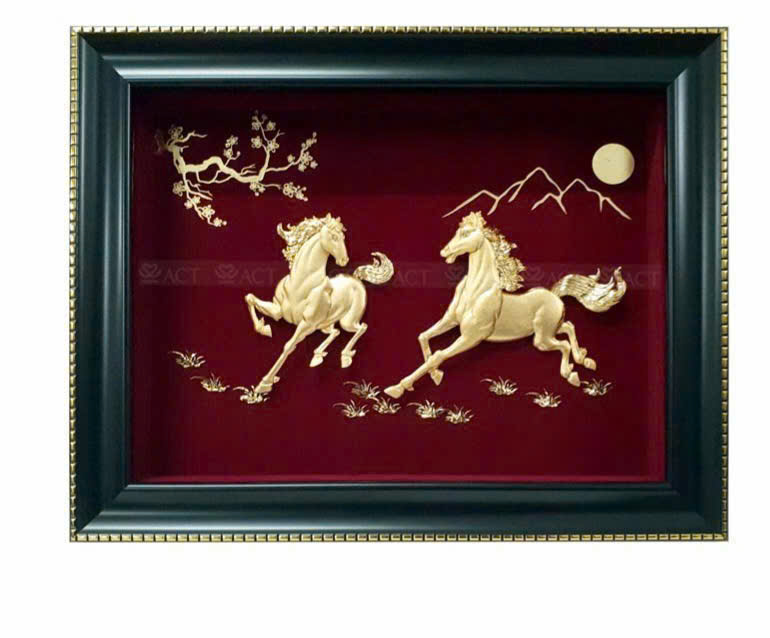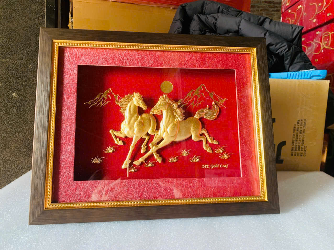 Tranh Song Mã Mạ Vàng 24K - Quà Tặng Đối Tác Sang Trọng, Ý Nghĩa