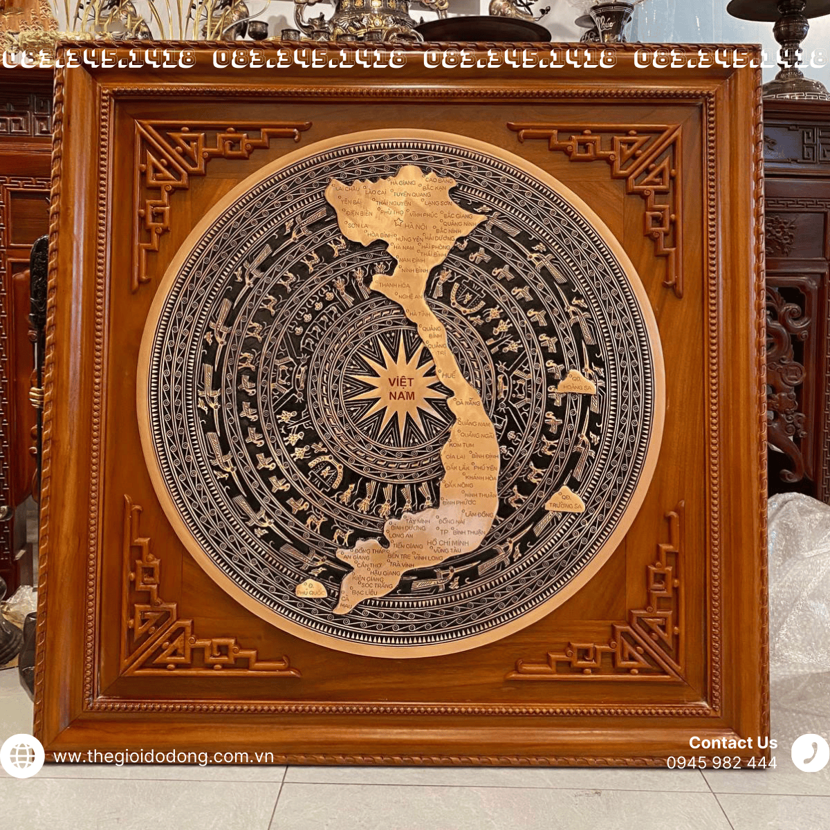 Trống Đồng Đông Sơn Treo Tường Đồng Đỏ Bản Đồ Việt Nam – Biểu Tượng Văn Hóa Lịch Sử