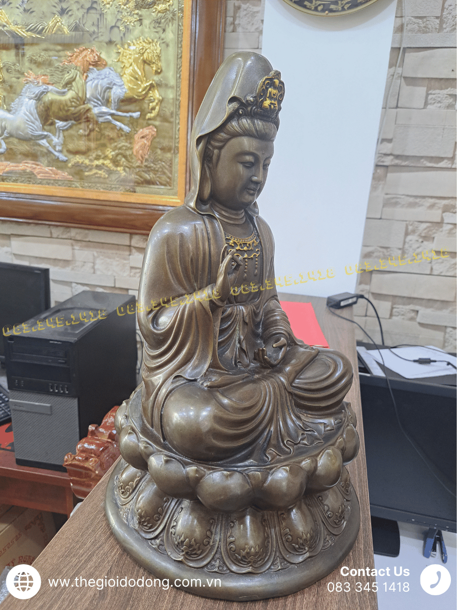 Tượng Quan Thế Âm Bồ Tát thường được thể hiện với vẻ đẹp uy nghiêm, từ bi, tay cầm bình cam lồ, thể hiện lòng từ bi cứu khổ cứu nạn của Ngài. Hình ảnh Quan Thế Âm Bồ Tát được xem là biểu tượng của sự an lành, bình yên, xua đuổi tà ma, mang lại may mắn và tài lộc cho gia chủ. Việc sở hữu một bức tượng Quan Thế Âm Bồ Tát bằng đồng trong nhà không chỉ làm đẹp không gian sống mà còn mang ý nghĩa tâm linh sâu sắc.
