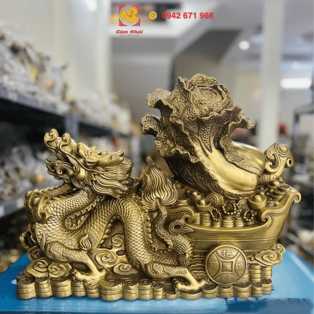 Tượng rồng bằng đồng - tượng rồng song long kéo bắp cải