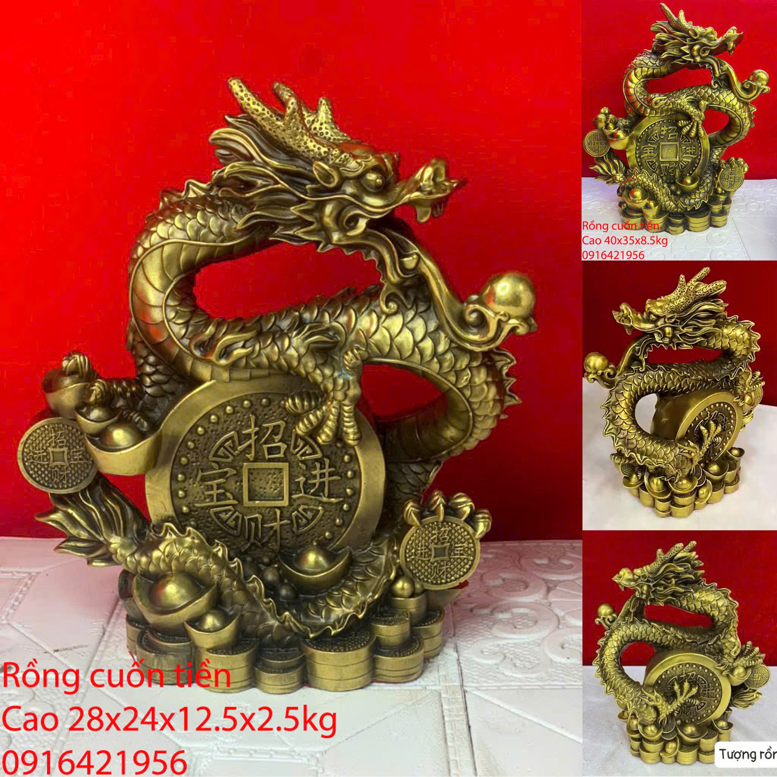 Tượng Rồng Phong Thủy Bằng Đồng – Rồng Cuộn Tiền Chiêu Tài Đắc Lộc