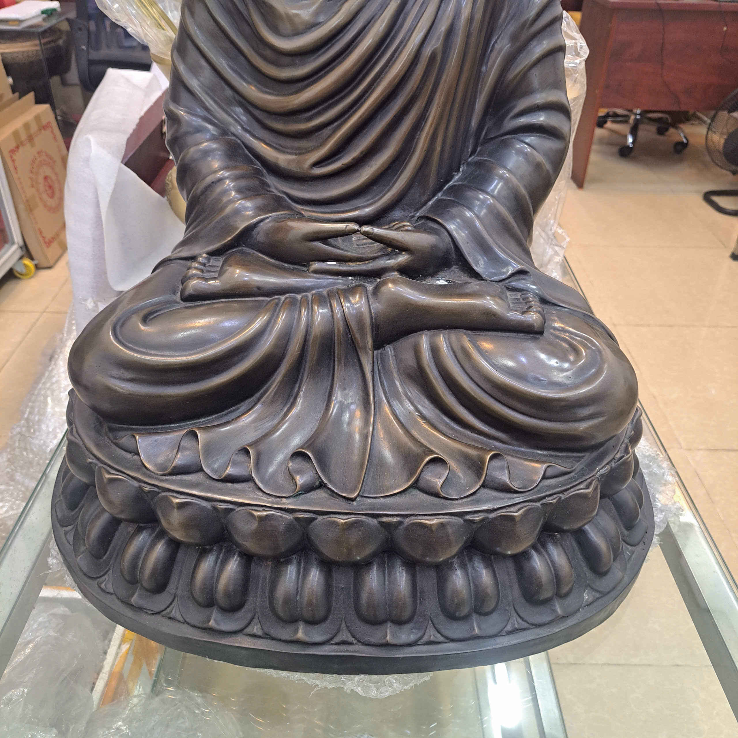 Kiểm tra chất lượng sản phẩm: Đảm bảo tượng được đúc từ đồng nguyên chất, chạm khắc sắc nét.
