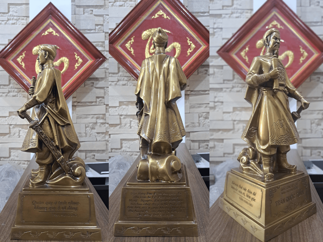 Tượng Trần Hưng Đạo bằng đồng là một trong những vật phẩm phong thủy được nhiều người yêu thích. Đây không chỉ là một tác phẩm nghệ thuật tinh xảo mà còn mang ý nghĩa sâu sắc về lòng yêu nước và tinh thần chống giặc ngoại xâm của vị anh hùng dân tộc Trần Hưng Đạo.